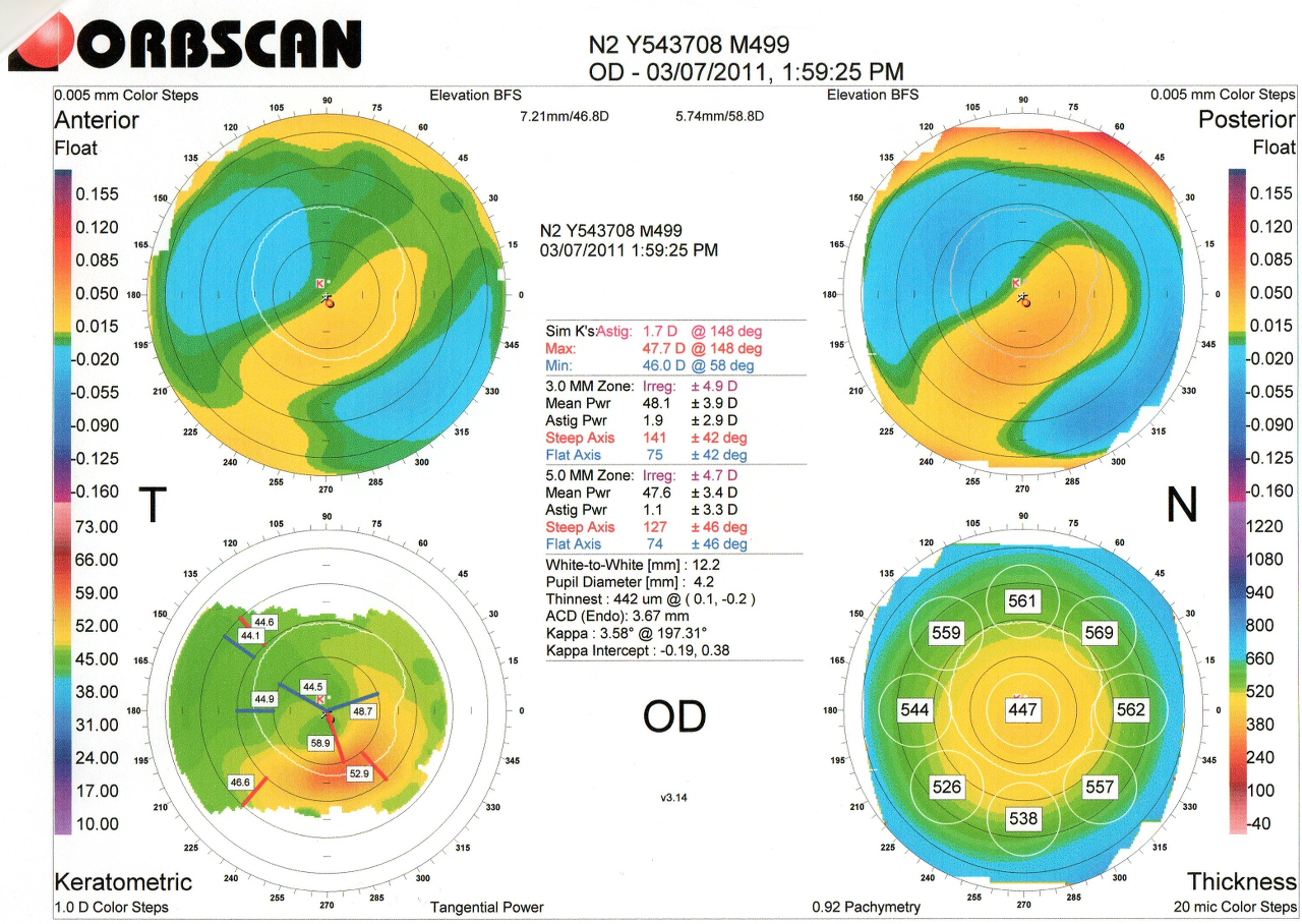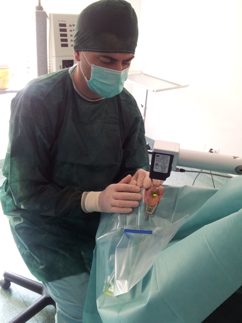 1 Cross linking per cheratocono Paziente di 25 anni con cheratocono evolutivo. Cornea trasparente, spessore corneale minimo di 442 micron. Effettuato intervento di cross linking.