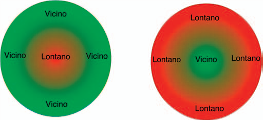 La geometria costruita con anelli concentrici (Figura 7), un po’ come nelle lenti bifocali, è formata da superfici sferiche per il potere lontano e vicino che si alternano; in tal modo l’area centrale può venire interessata dalla correzione per lontano mentre la periferia comprende quella prossimale, oppure viceversa. Solitamente il modello che prevale è quello con “centro – lontano” che prevede un design multifocale a cinque anelli sferici. In questo caso, escludendo l’anello centrale, si alternano quattro anelli: due con il potere per vicino e due con quello per lontano.