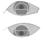 Fig.1: Posizionamento della lente bifocale sotto l’azione delle palpebre nel passaggio da lontano a vicino.