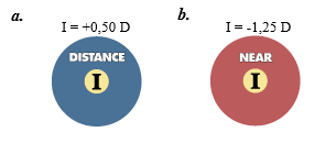Fig.5: Lenti a contatto differenziate: solitamente la lente in a. viene applicata all’occhio dominante, mentre la lente in b. in quello non dominante.
