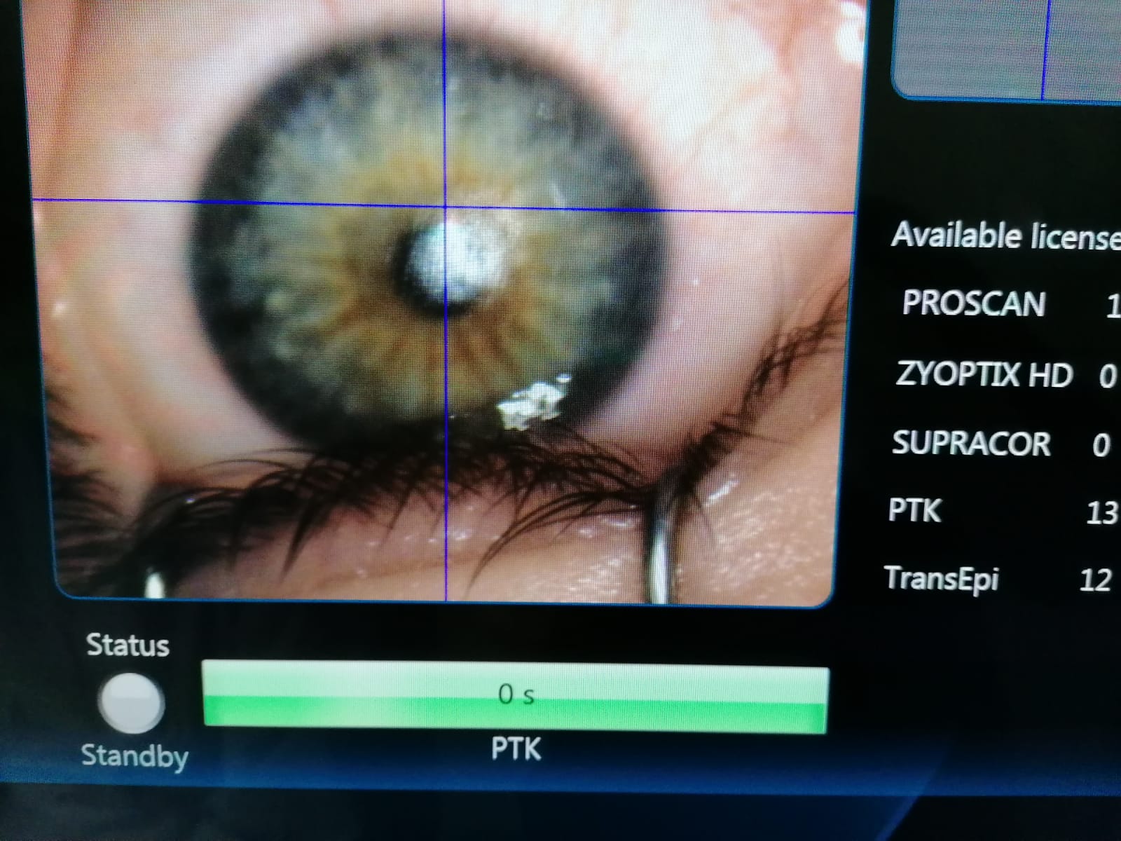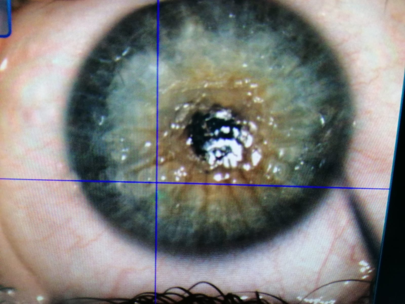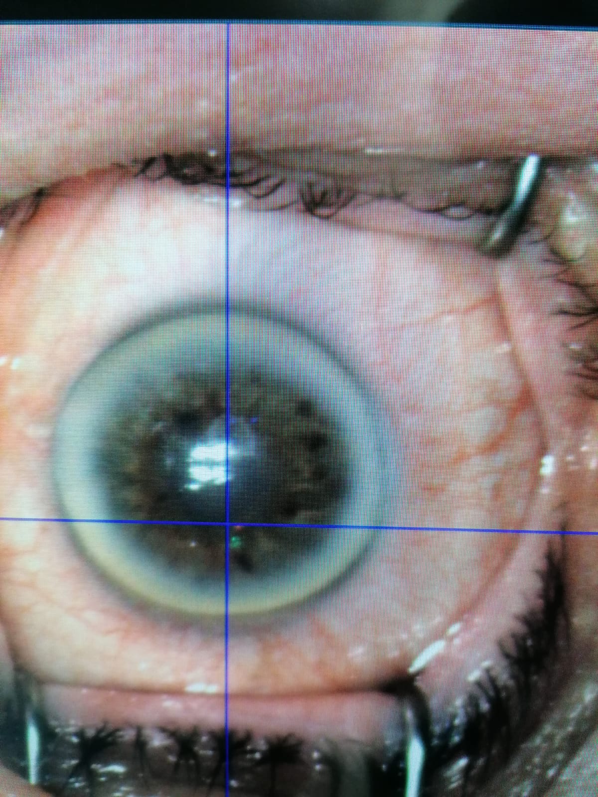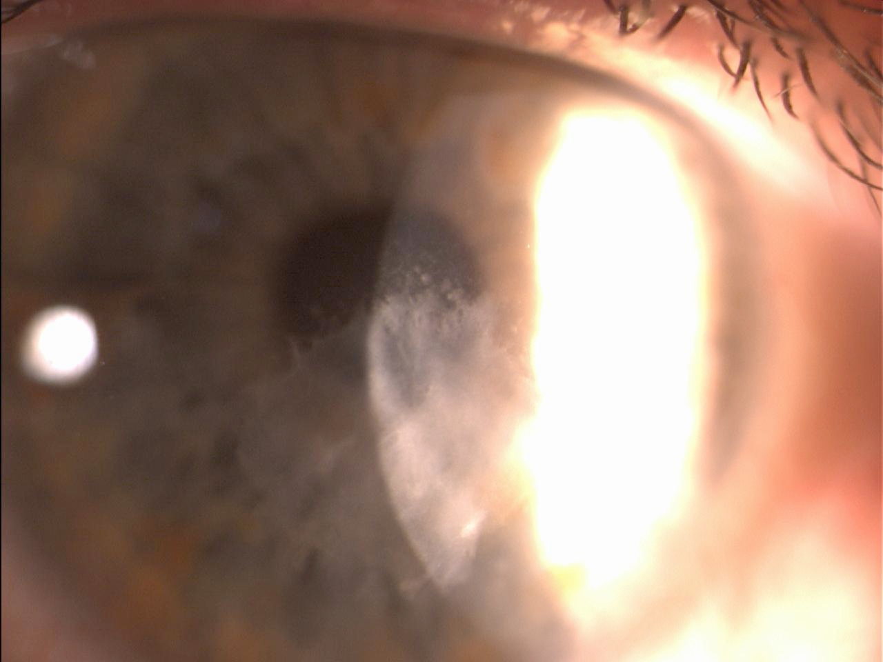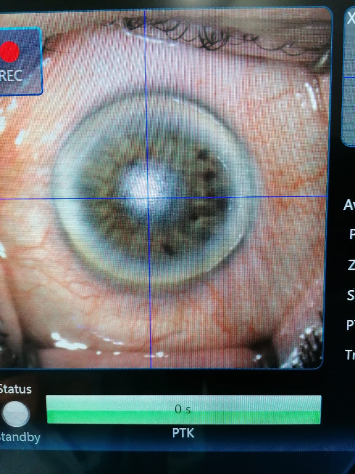 Programmato intervento di PTK (cheratectomia fototerapeutica) con laser ad eccimeri con lo scopo di regolarizzare la superficie corneale e ridare trasparenza alla cornea asportando l’haze.