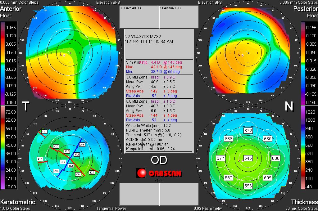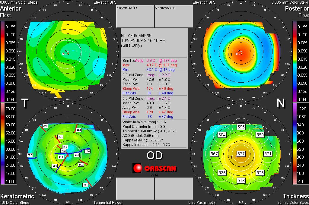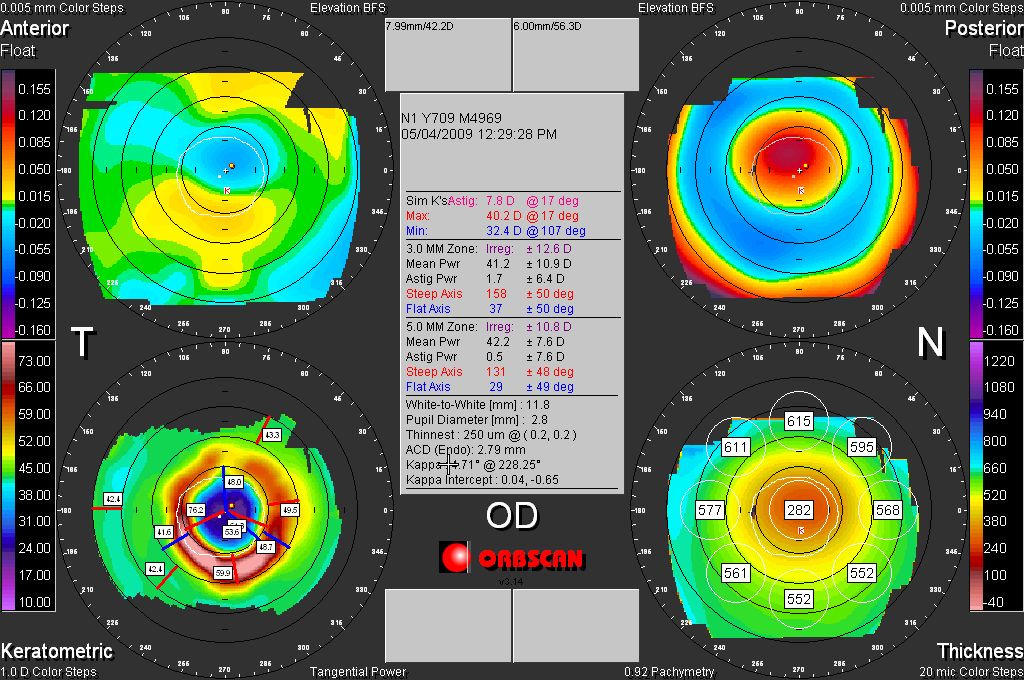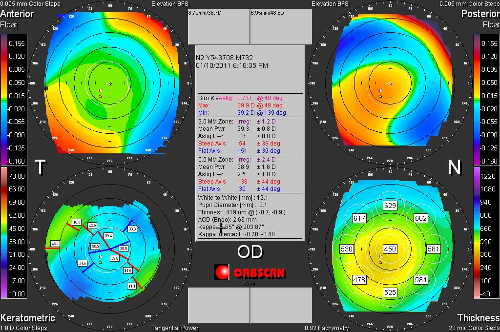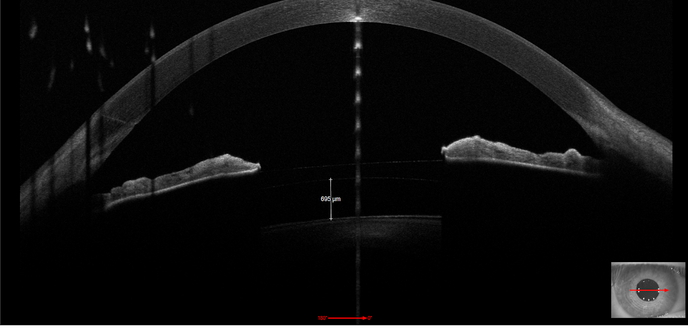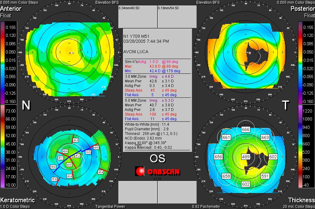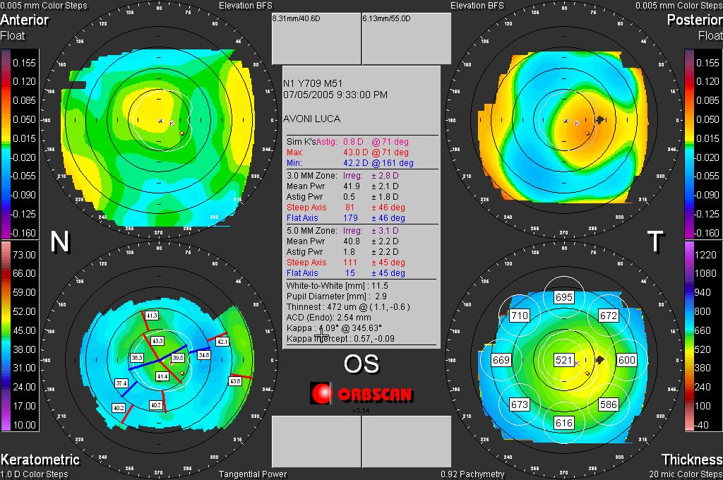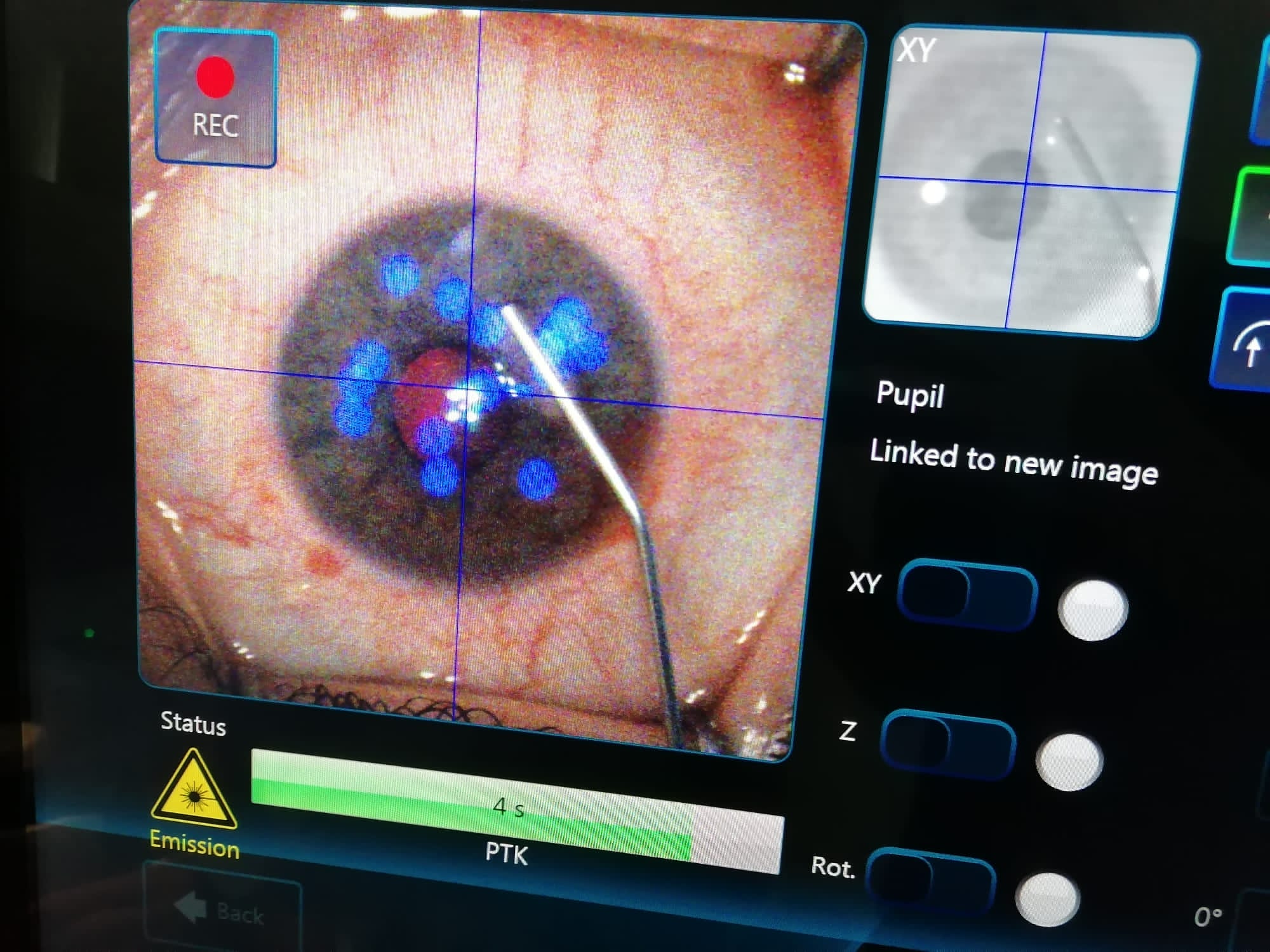 Programmato intervento di PTK (cheratectomia fototerapeutica) con laser ad eccimeri con lo scopo di regolarizzare la superficie corneale e ridare trasparenza alla cornea asportando l’haze.
