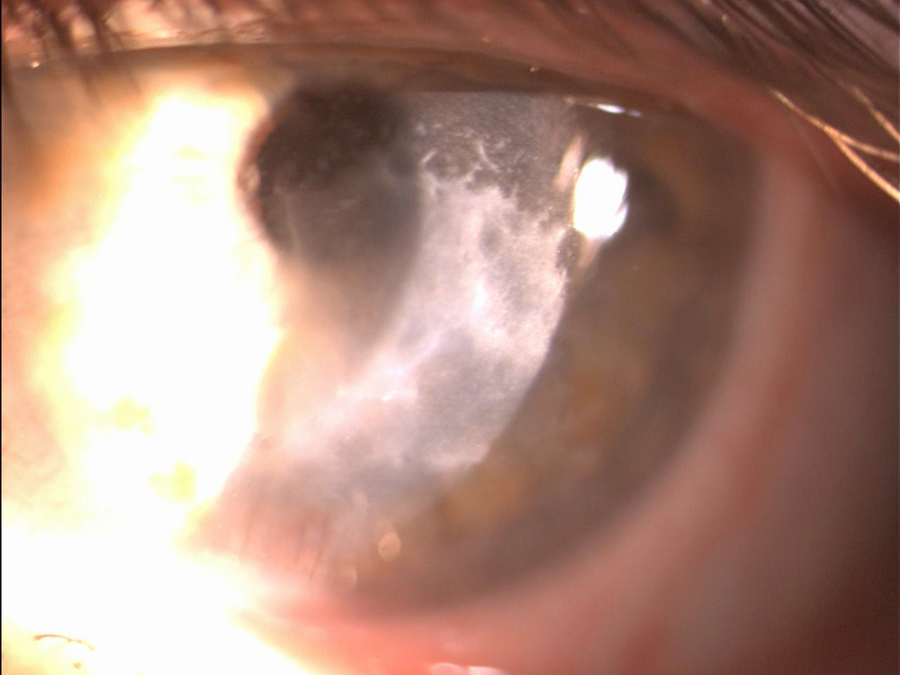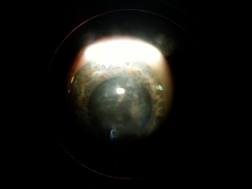 biomicroscopia: haze corneale centro paracentrale (vedi foto)