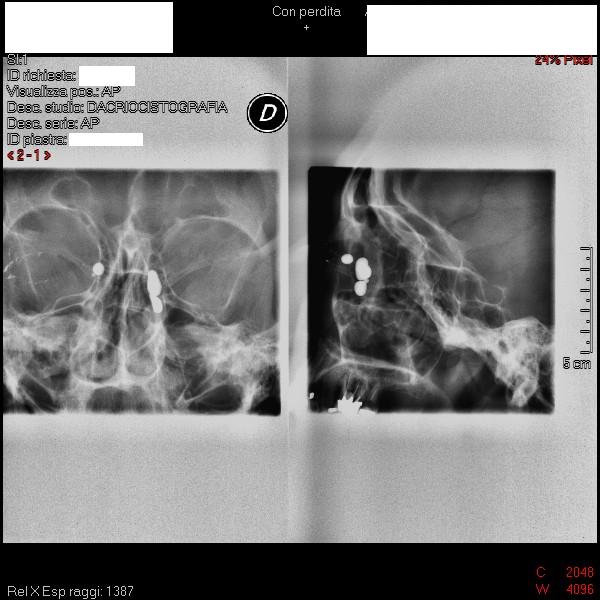 Paziente di 12 mesi visto all'età di 6 mesi per congiuntiviti catarrali ricorrenti, posta diagnosi di ostruzione congenita delle vie lacrimali. Viene prescritta la terapia topica per la congiuntivite e consigliati i massaggi in delle vie lacrimali e attendere l'eventuale apertura. Rivisto dopo 6 mesi con congiuntivite catarrale e ostruzione delle vie lacrimali viene consigliato l'intervento chirurgico di sondaggio delle vie lacrimali entro 2 - 4 mesi circa.